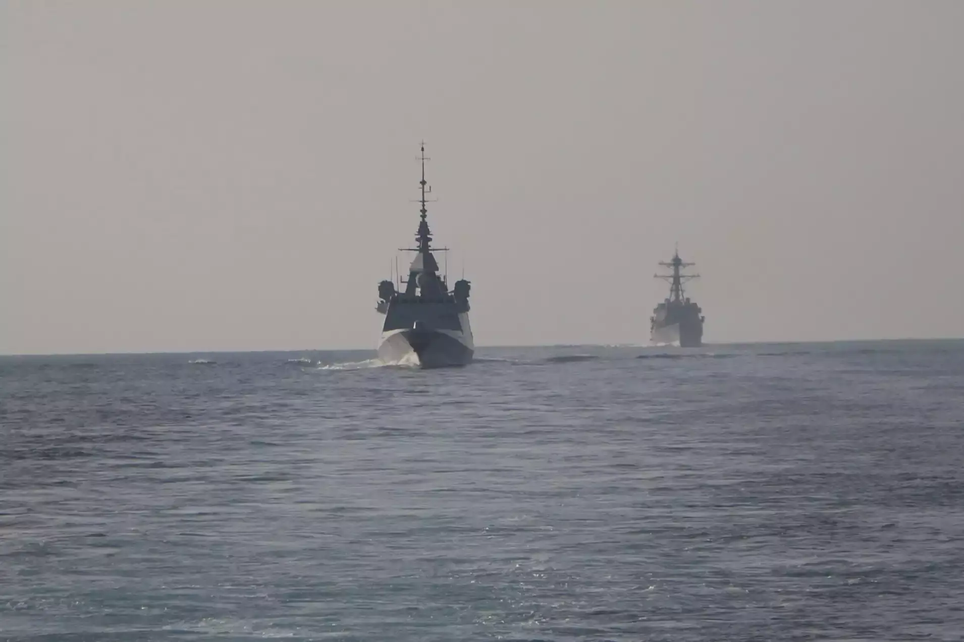 Frankreich und die USA arbeiten gerade in dieser Region zusammen, um die Verlegung von Marineeinheiten zu unterstützen. Aus diesem Anlass hat sich die Fregatte Languedoc (D 653, FREMM-Klasse) in das CSG 2 integriert, um die US-amerikanische Marinefliegergruppe zu verstärken. Dieses Schiff ist auf die U-Boot-Bekämpfung spezialisiert und verfügt unter anderem über ein CAPTAS 4-Schleppsonar, Torpedos und einen NFH-90-Caïman-Hubschrauber, der für die U-Boot-Bekämpfung ausgerüstet ist. Diese Fähigkeiten wurden von der US Navy bereits sehr geschätzt, da die V. Flotte im Jahr 2020 den "Hook'em Award" für die hervorragende Arbeit der Fregatte im Bereich der U-Boot-Bekämpfung (ASM) verliehen hat.